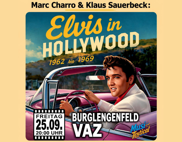 Noch einmal tauchen wir ein in die glanzvolle Welt der Traumfabrik Hollywood. Nach den Elvis-Presley-Spielfilmen der Anfangsjahre 1956 bis 1962 lassen wir uns entführen in die schillernde Filmwelt der Jahre 1962 bis 1969. Im Musitextical „Elvis in Hollywood 2“ leben die legendären Spielfilme von Elvis aus jener Zeit wieder auf und wir erleben, verpackt in ebenso spannende wie humorvolle Geschichten, die Welt hinter den Kulissen, präsentiert von Dr. Klaus Sauerbeck in der Rolle von Elvis-Manager Colonel Tom Parker.